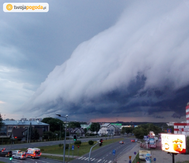 Burze przechodzą teraz nad Podlasiem i Podkarpaciem. Zdjęcie okazałej chmury szelfowej nad Białymstokiem dostaliśmy przed chwilą od @Marcina: