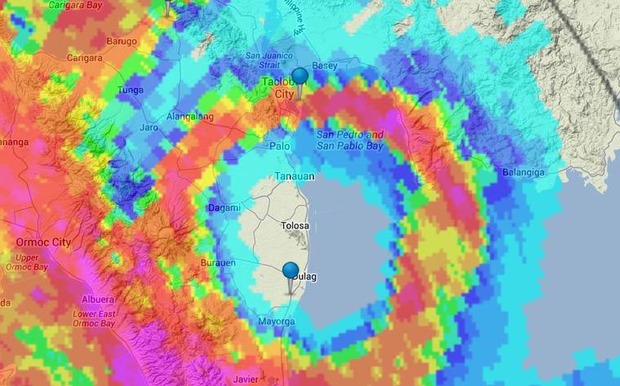Przekonali się o tym mieszkańcy miasta Tacloban i jego okolic. Jak wynika z obrazu radarowego, który zamieszczamy poniżej, oko cyklonu weszło na ląd 11 listopada 2013 roku o godzinie 21:40 czasu polskiego, nieco na południe od miasta, nad miejscowościami Tanauan, Tolosa i Dulag.