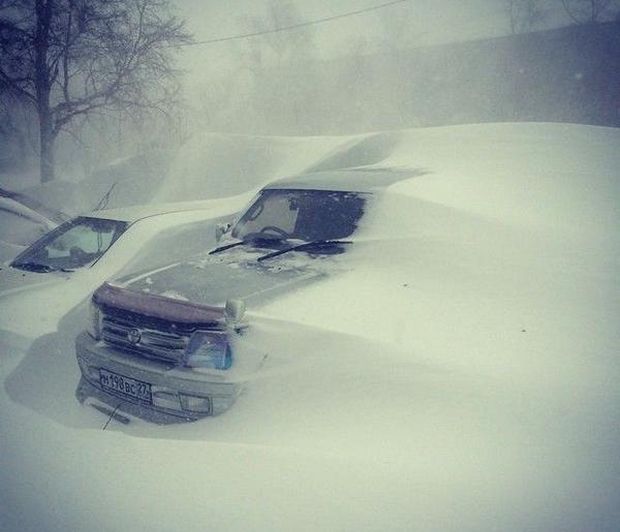 W Komsomolsku nad Amurem temperatura podczas zawiei śnieżnej spadła z minus 8 do nawet minus 30 stopni i to w ciągu zaledwie 2 dni. Region został przykryty ponad półmetrową warstwą śniegu. Porywisty wiatr usypał olbrzymie zaspy, które miały wysokość nawet 2-3 metrów.