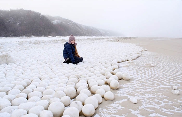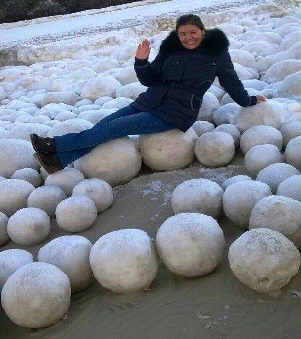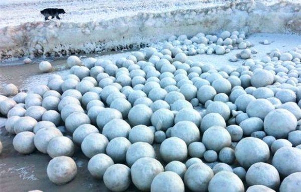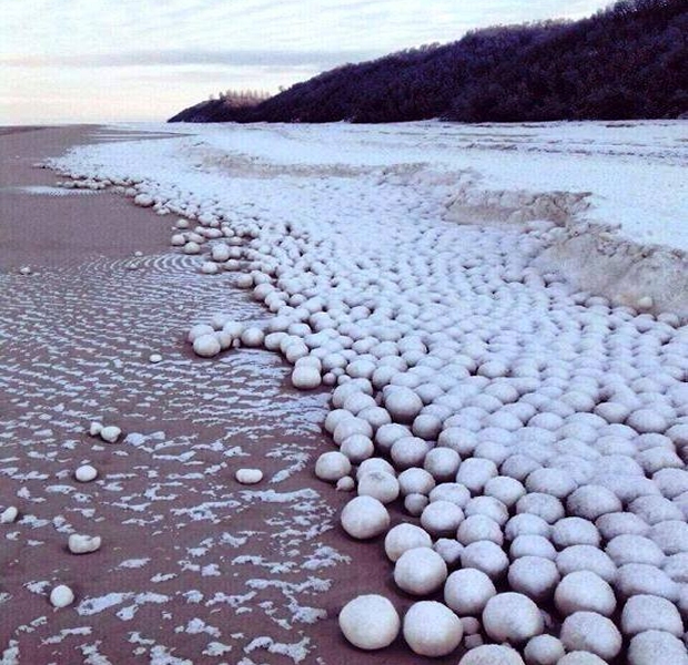 Są nim znacznych rozmiarów lodowe kule, które szczelnie pokrywają brzegi. Jedne kule są mniejsze, inne większe, ale wszystkie idealnie okrągłe, jakby ktoś je wyszlifował. Mają od 10 do nawet 50 centymetrów średnicy.