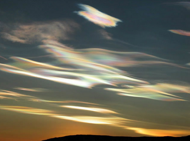W ich składzie wyróżnić można także kwas siarkowy i azotowy. Dzięki temu obłoki te są zdolne odbijać promienie słoneczne w taki sposób, że wyglądają jakby świeciły kolorami tęczy o świcie i zmroku. Można je też porównać do plamy benzyny.