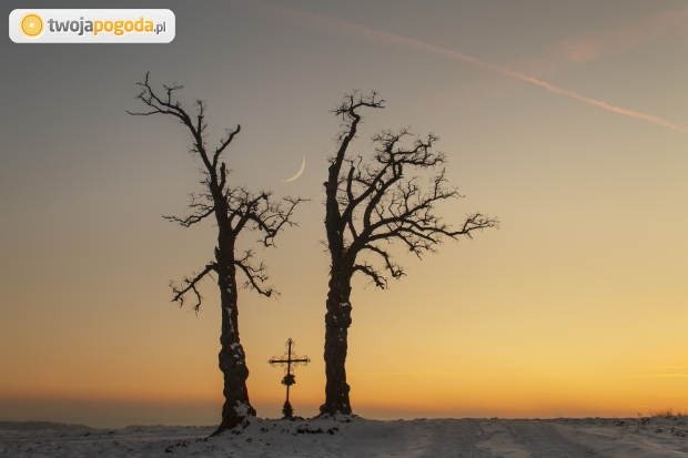 Pierwszy w tym roku zachód Słońca i jaki piękny, bo z młodziutkim sierpem Księżyca.