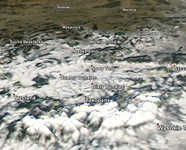 Od kilku dni pogoda w Tatrach jest wprost wyśmienita do uprawiania sportów zimowych. Niebo jest wolne od chmur i błękitne, leży sporo śniegu, a nocami trzyma solidny mróz. Chmur nie ma, więc możemy podziwiać biały puch, przykrywający najwyższe góry w naszym kraju, na zdjęciu satelitarnym. Kraków od śniegu jest wolny, ale im bliżej Zakopanego, tym śniegu jest więcej. W samej zimowej stolicy Polski mamy ponad 20 cm śniegu, a na Kasprowym Wierchu ponad metr.