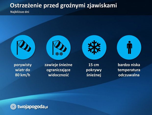 Noc zapowiada się pod znakiem przejaśnieć i rozpogodzeń, ale również przelotnych opadów śniegu, które przy utrzymującym się porywistym wietrze, nadal mogą zmieniać się w zawieje śnieżne. Kierowców podróżujących po drogach w nocy uprzedzamy przed ograniczoną widocznością. Z powodu napływu arktycznej masy powietrza i silnego wiatru temperatury będą dużo niższe od wskazań termometrów. Najzimniej będzie na północnym wschodzie, gdzie odczuwalnie będzie prawie minus 20 stopni, szczególnie o poranku... Dowiedz się więcej