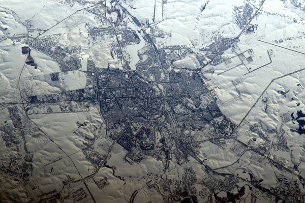 Thomas Pesquet, francuski astronauta, z pokładu Międzynarodowej Stacji Kosmicznej, z wysokości 400 kilometrów, uwiecznił miasto Równe w północno-zachodniej części Ukrainy. Wokół ciemnej zabudowy, która przyspiesza roztapianie się śniegu, dominują białe krajobrazy.