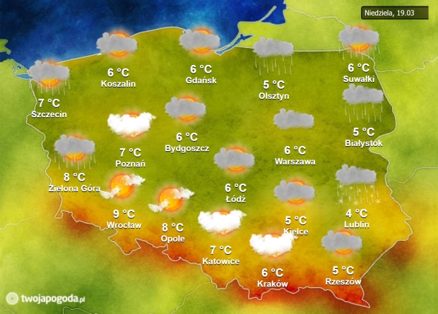 Noc z soboty na niedzielę (18/19.03) na zachodzie, południu i w centrum przyniosła przejaśnienia i rozpogodzenia, tym samym opady i wiatr ustały. Wichura przeniosła się do regionów wschodnich, zwłaszcza na południowy wschód.