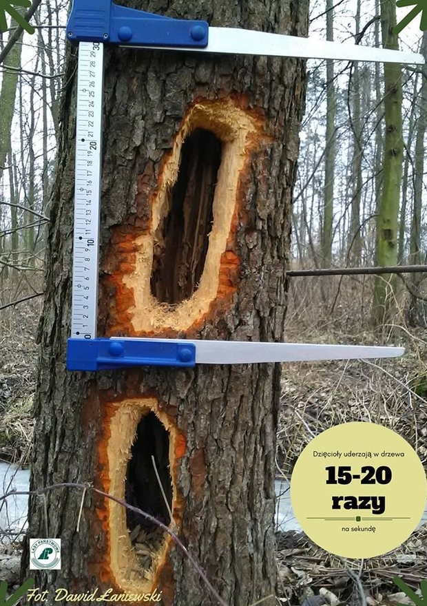 Dzięcioł, który tego dokonał, musiał być naprawdę głodny. Biorąc pod uwagę to, że uderzał w drzewo do 15-20 razy na sekundę, to musiał się naprawdę nieźle napracować, aby napełnić sobie brzuszek larwami ukrywającymi się w drewnie.