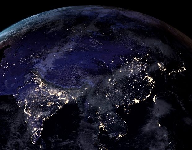 Azja w nocy. Fot. NASA / NOAA / Suomi NPP / EOSDIS / GSFC.
