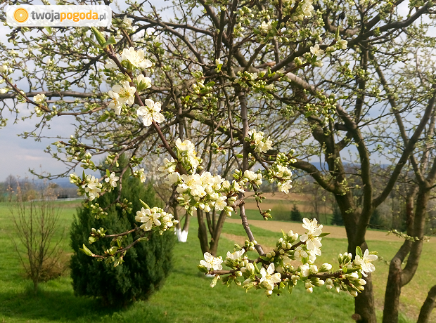 Wiosna fenologiczna, a więc ta przyrodnicza, najbardziej zaawansowana jest zwykle na południu Polski, gdzie średnie temperatury są najwyższe. @Agnieszka uwieczniła dzisiaj w Małopolsce przepięknie kwitnący krzew śliwy. Niestety, mieszkańcy północnych regionów naszego kraju na takie widoki muszą jeszcze trochę poczekać.