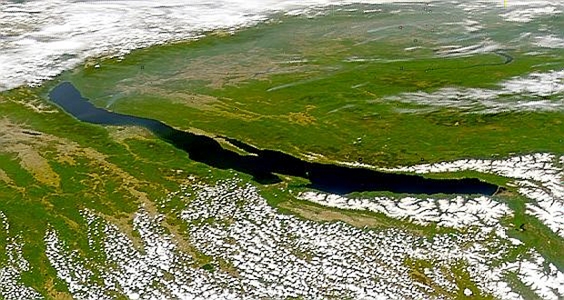Zdjęcie satelitarne jeziora Bajkał na Syberii.