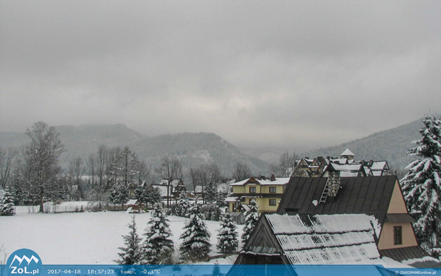W Zakopanem znów zrobiło się zimowo, co możecie zobaczyć na poniższym zdjęciu z kamery Zol.pl. W wyżej położonych częściach miasta leży już kilkanaście centymetrów śniegu i wciąż go przybywa. Największe śnieżyce spodziewane są w nocy. Do rana w Tatrach może spaść nawet ponad pół metra białego puchu. Ratownicy górscy podnieśli z tego powodu zagrożenie lawinowe z drugiego do trzeciego stopnia w 5-stopniowej skali. Wyzwolenie lawiny jest możliwe już przy małym obciążeniu dodatkowym, przede wszystkim na stromych stokach, a w niektórych przypadkach możliwe jest samorzutne schodzenie średnich, a sporadycznie także dużych lawin. Od wczoraj nad Morskim Okiem przybyło ponad 20 cm śniegu i obecnie jest go już metr, w Dolinie Pięciu Stawów mamy 130 cm śniegu, a na Kasprowym Wierchu prawie 1,5 metra.