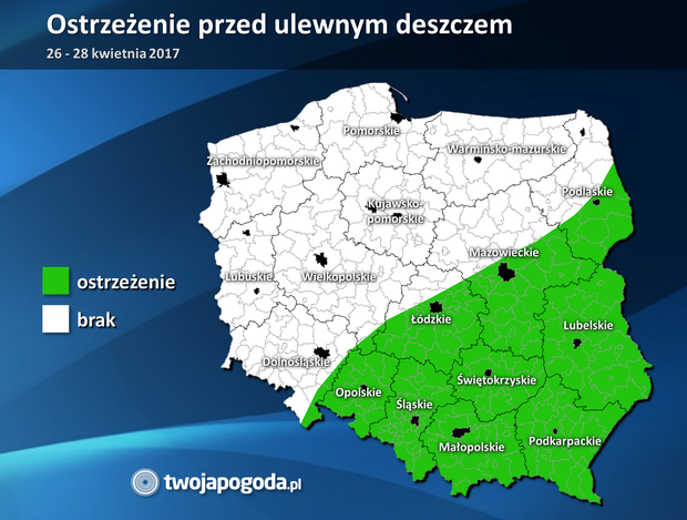 Od środy (26.04) do piątku (28.04) na południowe i wschodnie regiony Polski spadnie ponad 50 mm deszczu, a więc więcej niż zazwyczaj powinno przez cały kwiecień. Lokalnie na terenach górzystych sumy opadów mogą być nawet dwukrotnie wyższe.