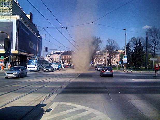 Trąba pyłowa na ulicy w Krakowie. Fot. Wikipedia.