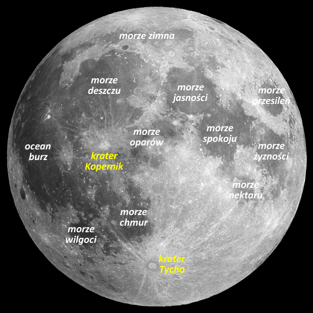 Kilkanaście minut temu nasz naturalny satelita wszedł w pełnię, która nazywana jest w maju Pełnią Kwiatowego Księżyca. Kończy ona na szczęście krótki okres przymrozków. Jeśli mieszkacie w południowej połowie kraju, gdzie rozpogodzeń jest najwięcej, to zachęcamy Was do obserwacji. Ciemne obszary na powierzchni Księżyca nazywane są "morzami". Nie ma tam wody, to tereny pojawiania się bazaltu, a więc ciemnej skały wulkanicznej. Bazalt na Księżycu to efekt uderzeń olbrzymich meteorytów, które wywołały wgłębienia w księżycowej glebie. Każde morze ma swoją romantyczną nazwę. Może uda się Wam je zapamiętać?