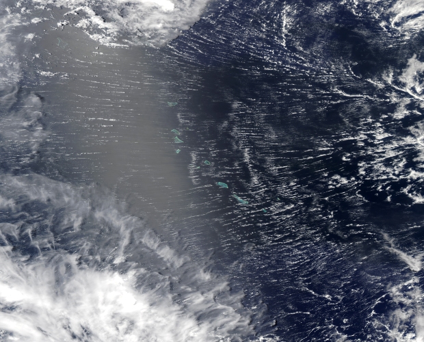 Satelita uwiecznił nietypowe chmury ciągnące się nad wodami Pacyfiku i położonymi na nich Wyspami Gilberta, należącymi do państwa Kiribati. To chmury rolkowe, które nazywane są Volutus.