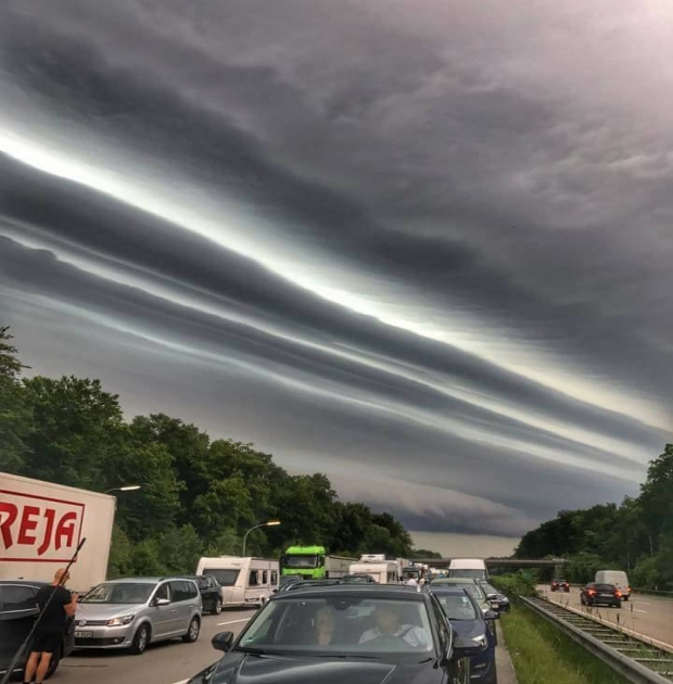 Nad północnymi Niemcami przechodzi tzw. mezoskalowy układ konwekcyjny (MCS), któremu towarzyszą bardzo liczne błyskawice, huraganowy wiatr (120 km/h) ulewy (30 mm) i grad (3 cm). Nad regionem widoczny jest malowniczy wał szkwałowy (chmura szelfowa). Możecie go zobaczyć na poniższym nagraniu podczas przechodzenia nad Hamburgiem: