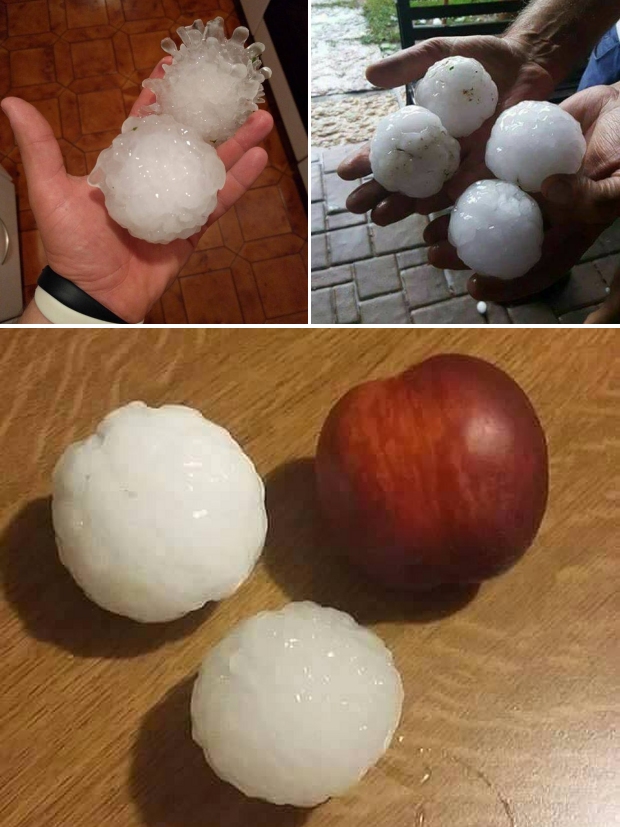 Gigantyczna burza gradowa przeszła wczoraj nad Wenecją. Z ulewnym deszczem spadł grad wielki jak piłki tenisowe. Lodowe bryły dziurawiły dachówki, niszczyły uprawy, wybijały szyby w oknach i wgniatały karoserię samochodową. Kilka osób odniosło obrażenia ciała. Doszło też do licznych podtopień, ponieważ wezbrane rzeki wystąpiły z brzegów i zalały błotem i kamieni kilka miejscowości w rejonie Wenecji. Straty są bardzo duże.