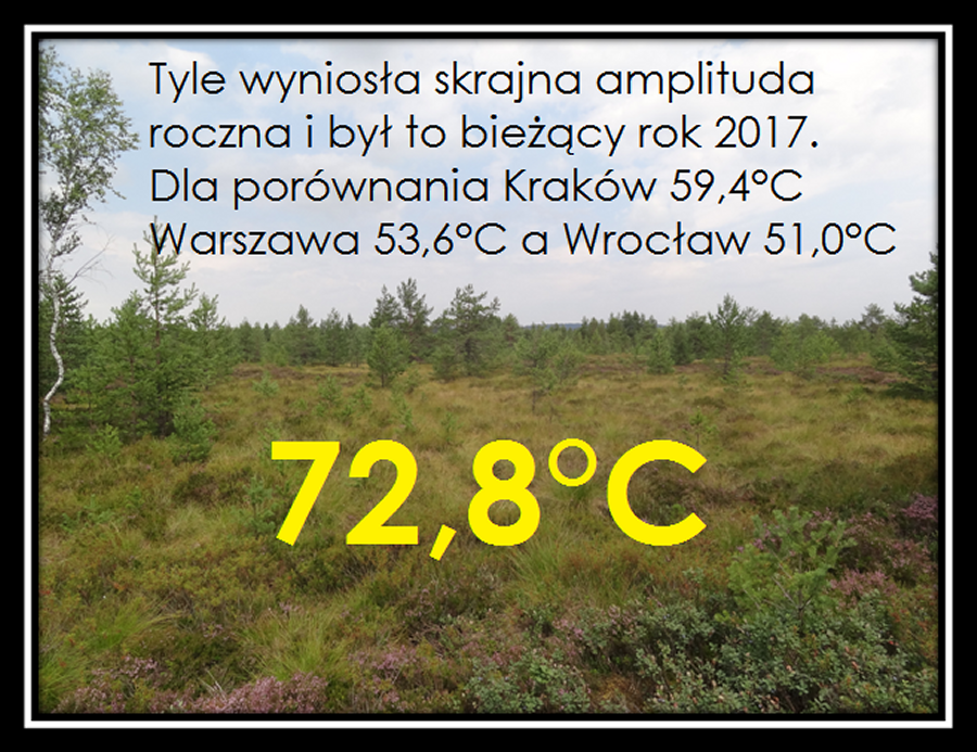 Jednak dolny próg temperatury może nas przerazić. W lutym 2012 roku, gdy pomiary na torfowisku nie były jeszcze prowadzone, temperatura mogła tam spaść do minus 40 stopni. Podczas jednej z największych fal mrozów, która miała miejsce w lutym 1929 roku, niewykluczone, że temperatura zbliżała się tam do minus 50 stopni. Nie bez przyczyny mrozowiska nazywane są "Małą Syberią".