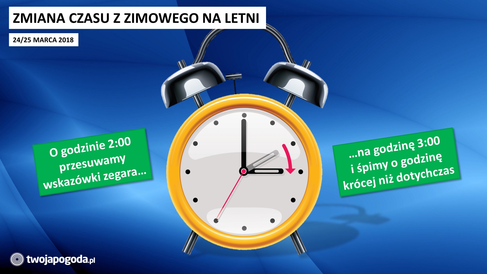 Nadchodząca sobota (24.03) będzie ostatnim dniem obowiązywania czasu zimowego. W nocy z soboty na niedzielę (24/25.03) o godzinie 2:00 przestawiamy zegarki na godzinę 3:00, a więc o godzinę wprzód. Niestety, nie wszyscy będą zadowoleni.