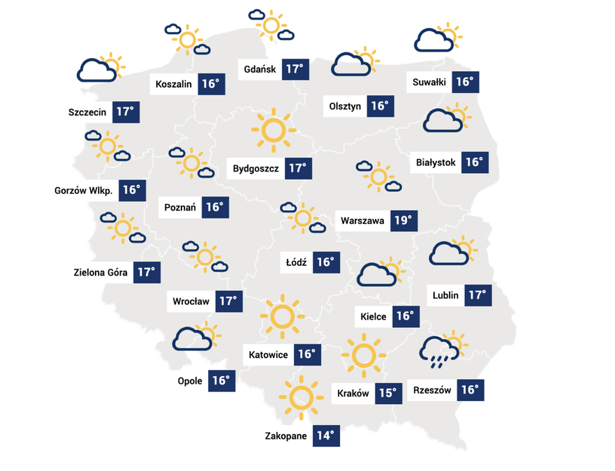 Warto rozpocząć od dobrych wieści. Po kilku chłodniejszych dniach wreszcie wraca długo wyczekiwane ocieplenie. Odczujemy je zresztą już od wczesnych godzin porannych, kiedy to słupki rtęci w niemal całej Polsce pokażą od 16 do 17 stopni.