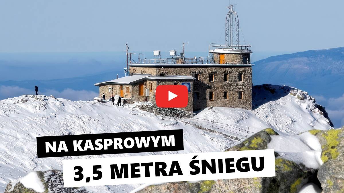 Następnie pojawiają się piękne krajobrazy najwyższych polskich gór, na czele z rekordowo zasypanym śniegiem szczytem i górną stacją kolejki. Wreszcie naszym oczom ukazuje się obserwatorium meteorologiczne i narciarze korzystający z mas śniegu.