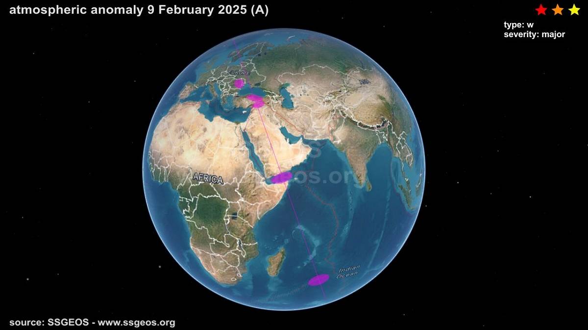 W drugiej połowie lutego 2025 roku wysokie ryzyko bardzo silnych wstrząsów ziemi obejmuje południową Kalifornię, wschodnią Turcję, wschodnią Rumunię, wschodnią Indonezję, południową Kamczatkę, południowy Iran, Kaszmir, południową Alaskę oraz liczne wyspy środkowego Atlantyku, w tym portugalskie Azory.