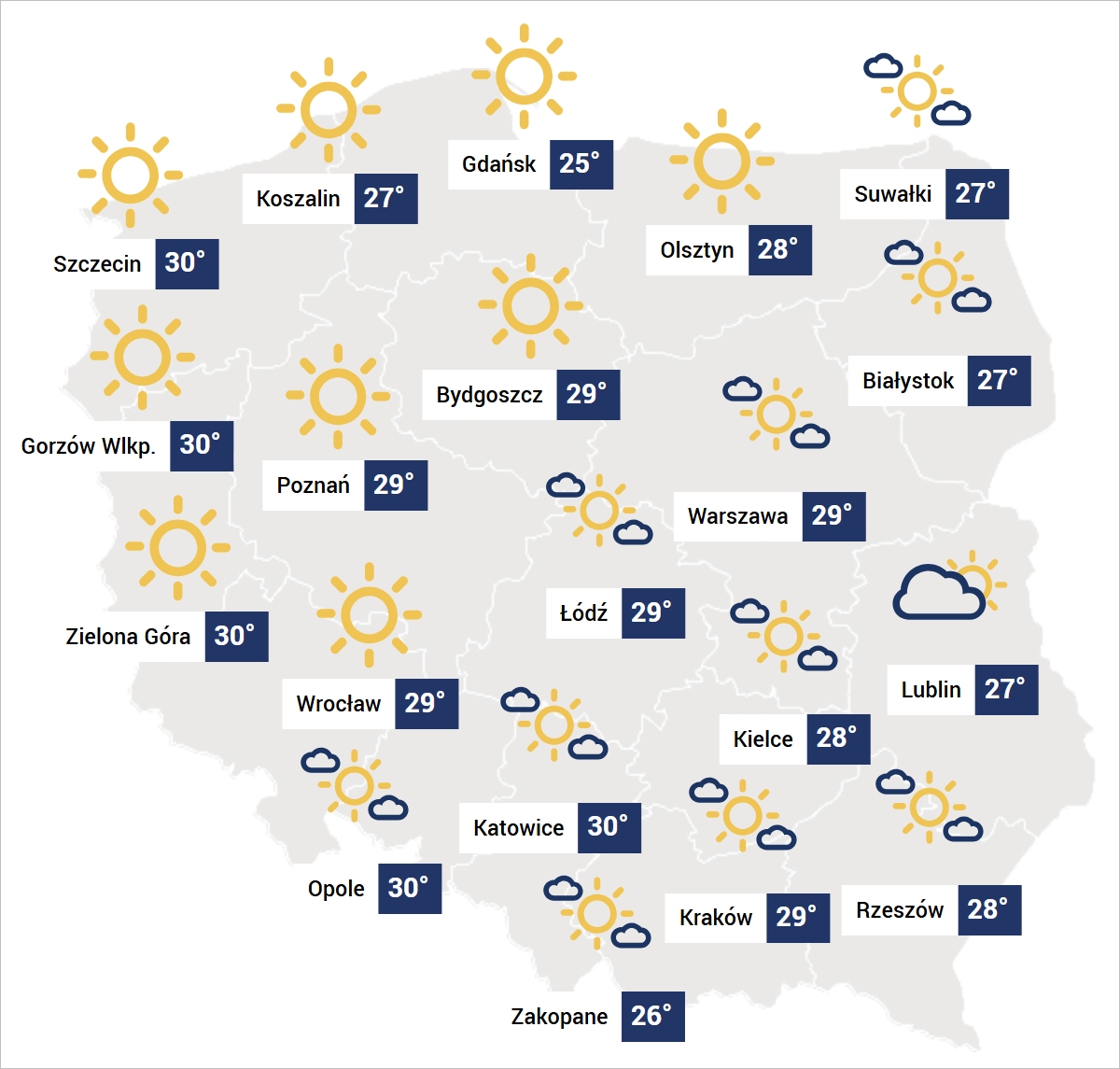 Cieplejsze powietrze wróci między niedzielą a wtorkiem (25-27.05), kiedy temperatura znów wróci w okolice 20 stopni. Dalsze dni przyszłego tygodnia z umiarkowanym ciepłem od 15 do 18 stopni. Dopiero przełom maja i czerwca ma szansę być znacznie cieplejszy, wręcz gorący.