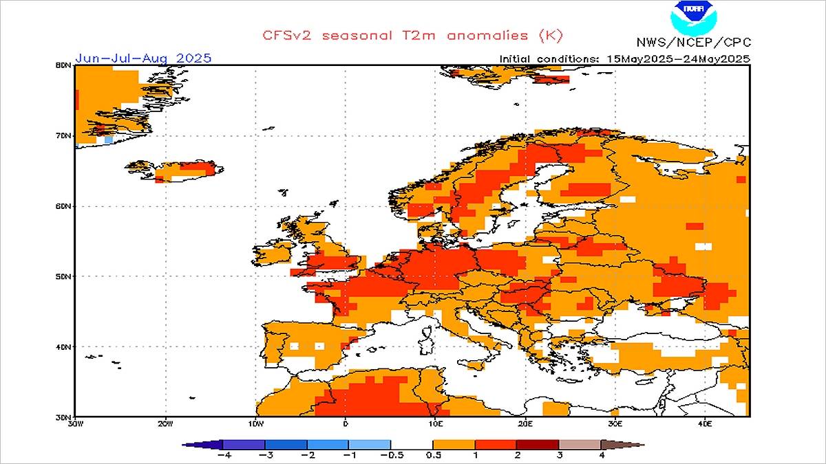 Zarówno amerykańskie NOAA, jak i europejskie ECMWF, wskazują, że lato będzie wyjątkowo ciepłe. Czerwiec będzie miał najmniejszą anomalię, mimo to średnia temperatura powinna być od 0,5 do 1 stopnia wyższa od normy wieloletniej. Szczególnie gorąco będzie w drugiej połowie miesiąca.