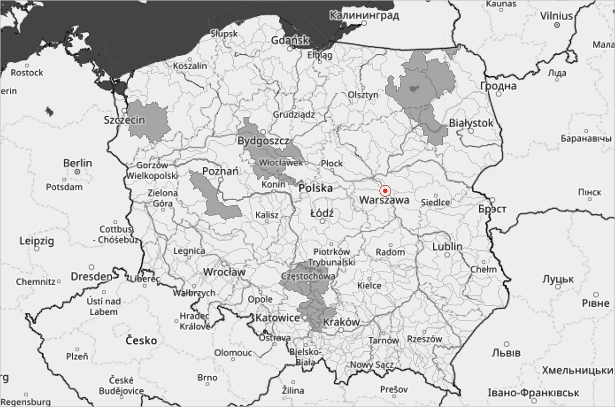 Obecnie wydzielonych zostało pięć obszarów, gdzie występują niskie przepływy wody. Obejmują one zlewnię Iny i Płoni, górnej Noteci, Tążyny, Liswarty, górnej Warty, Przemszy, Węgorapy, Pisy, środkowej Narwi, górnego Ełku i Legi oraz Kanał Mosiński.