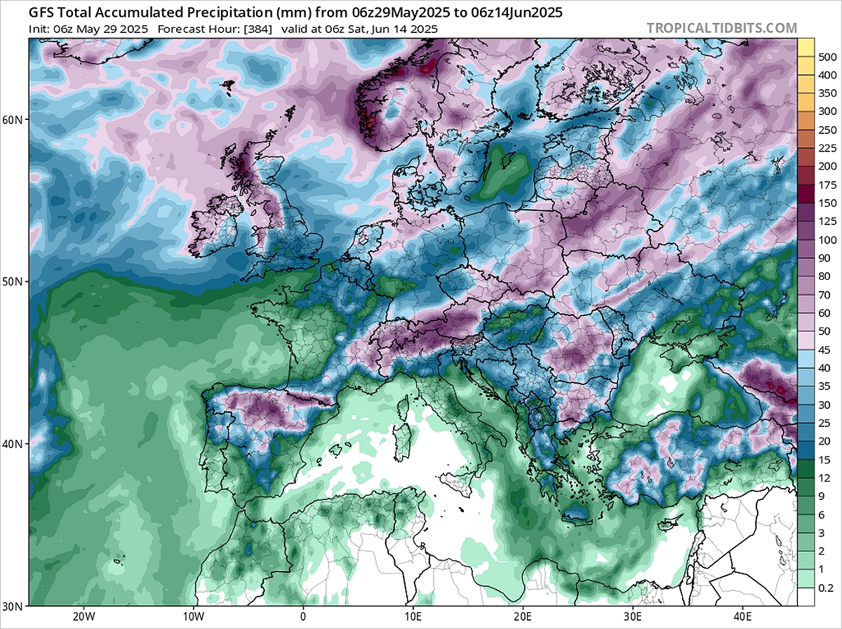 Pierwsza połowa czerwca zapowiada się bardzo mokro, miejscami skrajnie, aż do tego stopnia, że po centralnej Europie będzie krążyć widmo masowych podtopień, a nawet ryzyko powodzi, dlatego trzeba trzymać rękę na pulsie i na bieżąco śledzić najnowsze prognozy numeryczne.