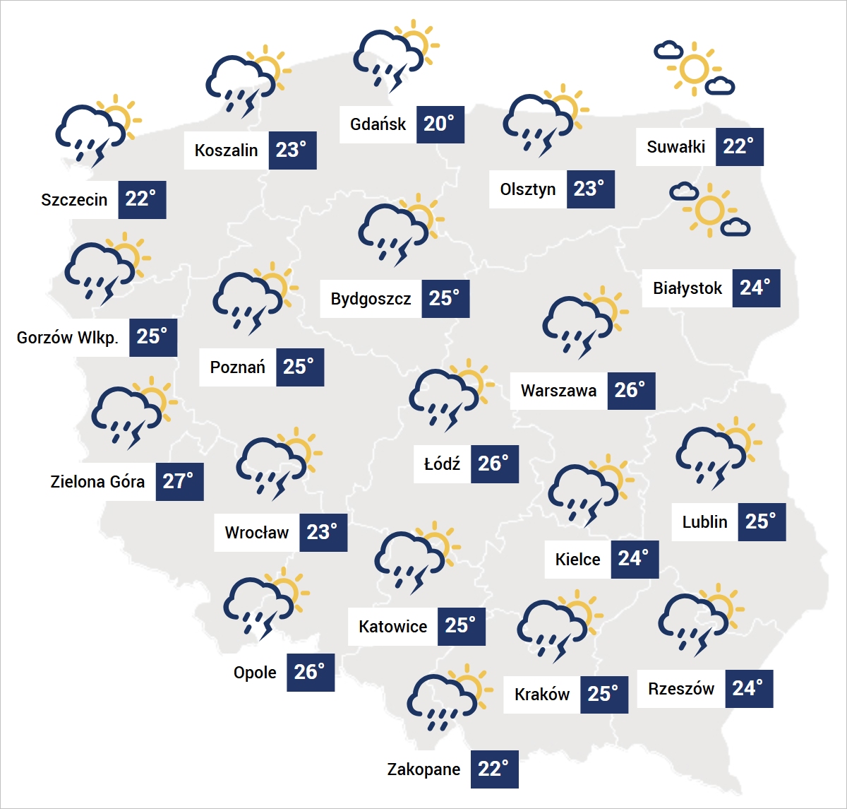 Zrobi się nie tylko gorąco, ale też niemiłosiernie parno i duszno, ponieważ w większości regionów temperatura przekroczy 25 stopni, miejscami na zachodzie i południu dochodząc do 27-28 stopni. Chłodniej tylko na północnym wschodzie, około 20 stopni.