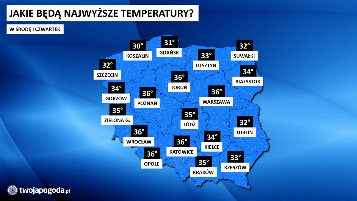 Najgoręcej będzie nadal na zachodzie, gdzie termometry pokażą w godzinach popołudniowych od 32 do 35 stopni. Przy granicy z Niemcami nie można wykluczyć nawet 36 stopni. Pamiętajmy, że począwszy od 35 stopni upał zaczyna być skrajnie niebezpieczny.