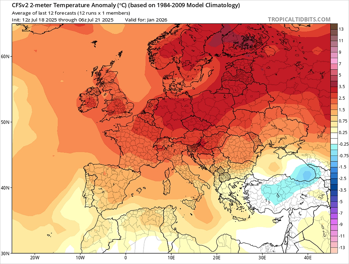 Styczień zapowiada się wyjątkowo ciepło, na co wskazują anomalie średniej temperatury. Fot. tropicaltidbits.comOd tego, jak dalej będą przebiegać konflikty, zależeć będzie dostępność energii, a przez to także jej ceny. Jeśli oba czynniki, czyli pogoda panująca zimą, a także sytuacja geopolityczna, okażą się niekorzystne, to ogrzewanie może nas kosztować naprawdę dużo.
