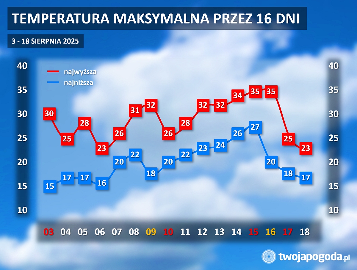 Po niedużym ochłodzeniu, deszczach i burzach, na początku drugiej dekady sierpnia, upał wróci, tym razem silniejszy i na dłużej. Do połowy miesiąca trzeba się liczyć nawet z 35 stopniami w cieniu. Jednak jeszcze w trakcie długiego weekendu nadejdzie ochłodzenie poprzedzone burzami.