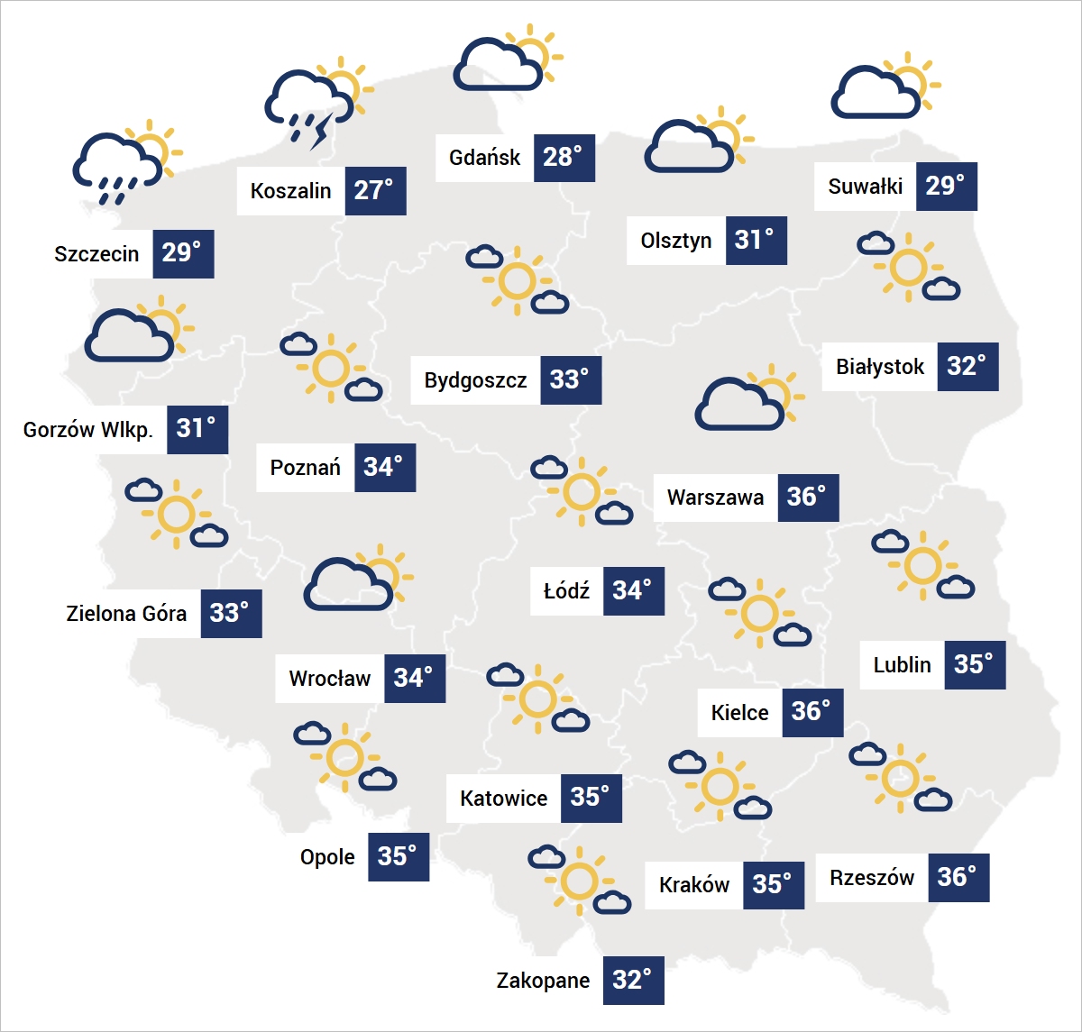 Prognoza pogody na niedzielę.Jednak miejscami na południu, południowym wschodzie i w centrum żar osiągnie od 34 do 36 stopni. W poniedziałek (11.08) upał zostanie przepędzony przez chłodny front nad wschodnie województwa. Tam również spodziewamy się powyżej 35 stopni.