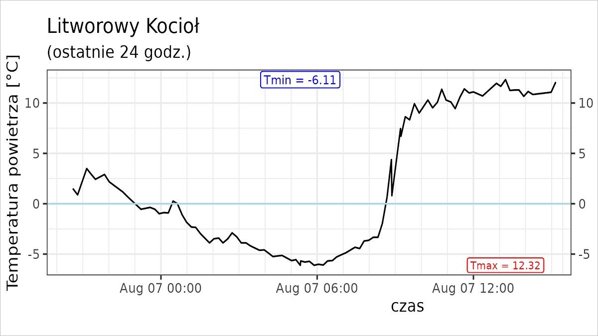 Wykres temperatury dla Litworowego Kotła. Fot. mrozowiska.comTo nowy absolutny rekord minimalnej temperatury odnotowanej kiedykolwiek w Polsce. Dotychczasowy rekord utrzymywał się od 30 sierpnia 1966 roku, kiedy minus 2,8 stopnia zmierzono w Biebrzy na Podlasiu.