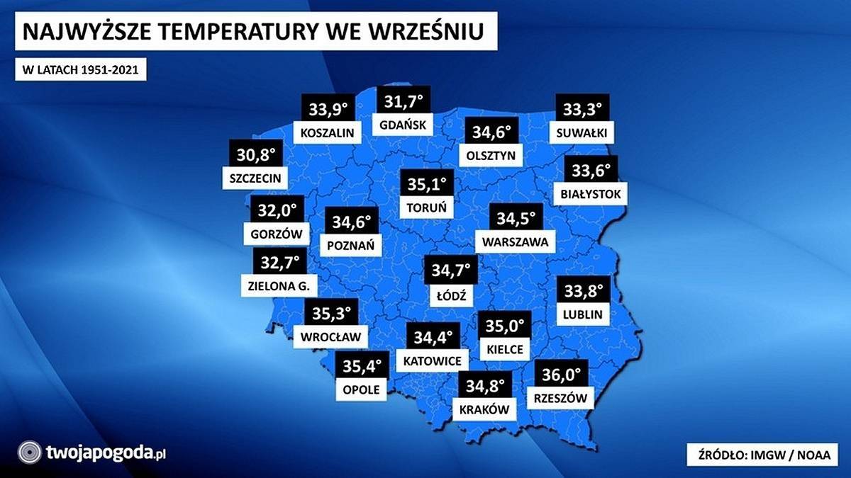 W bardzo wielu regionach naszego kraju pobiła dotychczasowe rekordy dla tego miesiąca. Według danych IMGW-PIB, w Tarnowie w woj. małopolskim odnotowano 36,8 stopnia i od tego czasu jest to nowy rekord ciepła dla września w skali całej Polski.