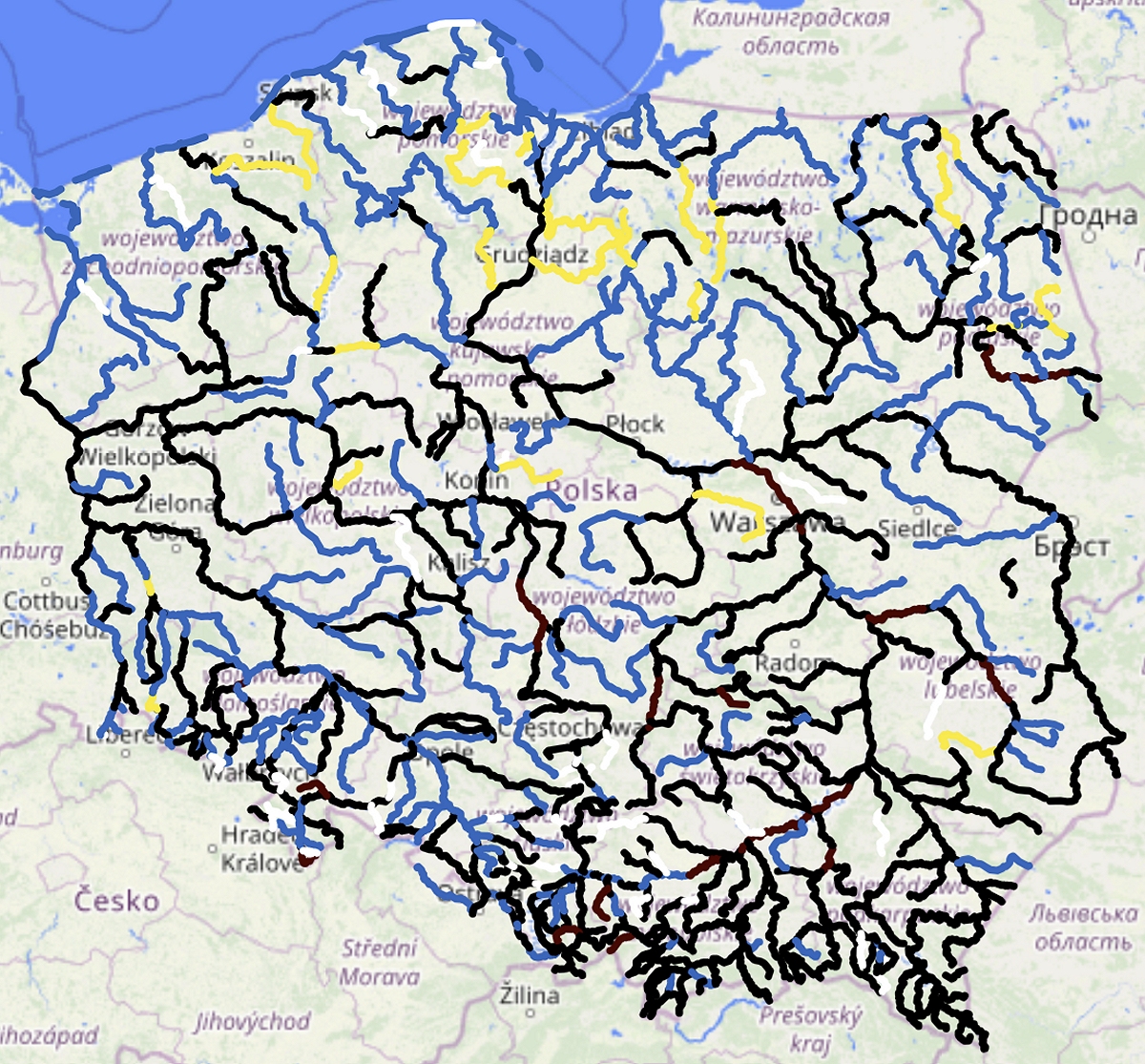 Aktualny poziom wody w rzekach. Fot. IMGW.Dotyczą one całego dorzecza górnej i środkowej Wisły i Odry. Sytuacja trochę lepsza jest w północnych województwach, ale i tam się pogarsza. Według danych IMGW-PIB w Warszawie poziom Wisły opadł do zaledwie 4 centymetrów, bijąc kolejny historyczny rekord.