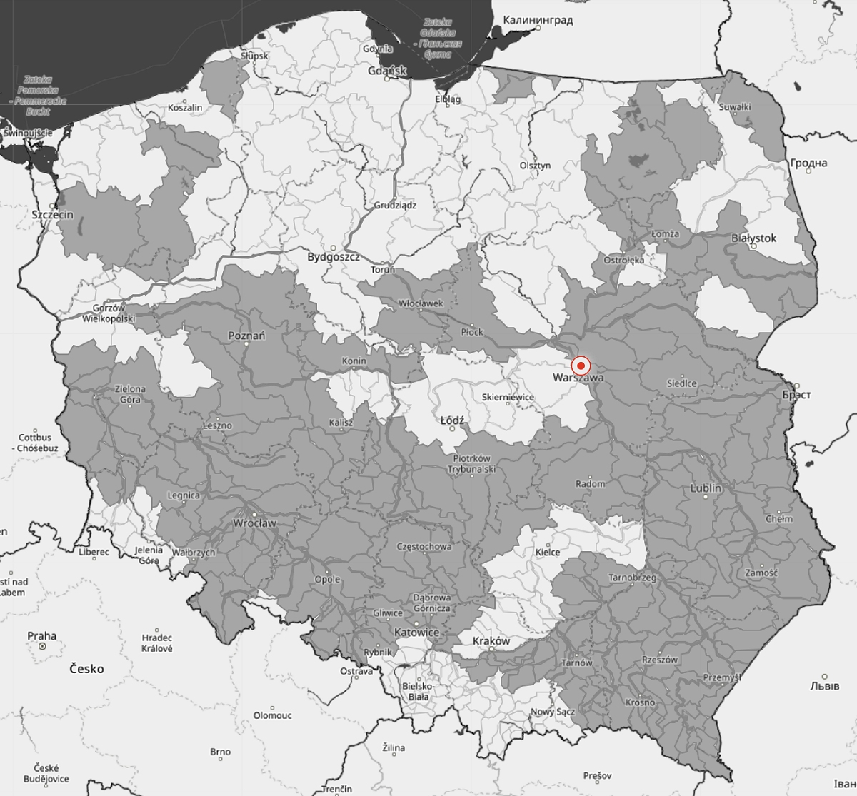 Szare obszary, gdzie występują niskie przepływy wody, początkowo były rozsiane po całym kraju, ale z biegiem tygodni rozszerzały się aż zaczęły się ze sobą łączyć. Obecnie zajmują już 55-60 procent powierzchni Polski, głównie zachodniej, południowej, wschodniej i centralnej.