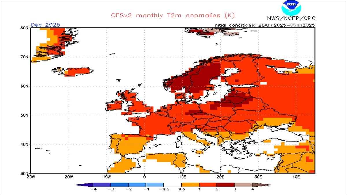 Według najpopularniejszego amerykańskiego modelu prognostycznego CFS, meteorologiczna zima, która obejmuje okres od 1 grudnia do 28 lutego, będzie w Polsce łagodna. Średnie 3-miesięczne temperatury powietrza będą oscylować w okolicach 1,5 stopnia powyżej normy wieloletniej.