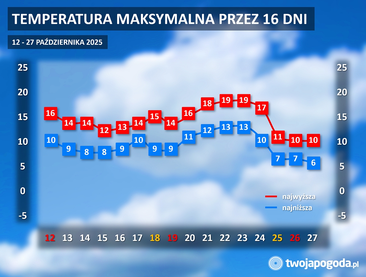 Opady ograniczą się przeważnie do wschodnich dzielnic, ale po pierwsze będą słabe, a po drugie przelotne, więc nie powinny nam już tak dokuczać, jak w ostatnich dniach. Temperatura będzie stabilna, od 8 do 16 stopni, jednak nocami i o porankach możliwe są przymrozki.