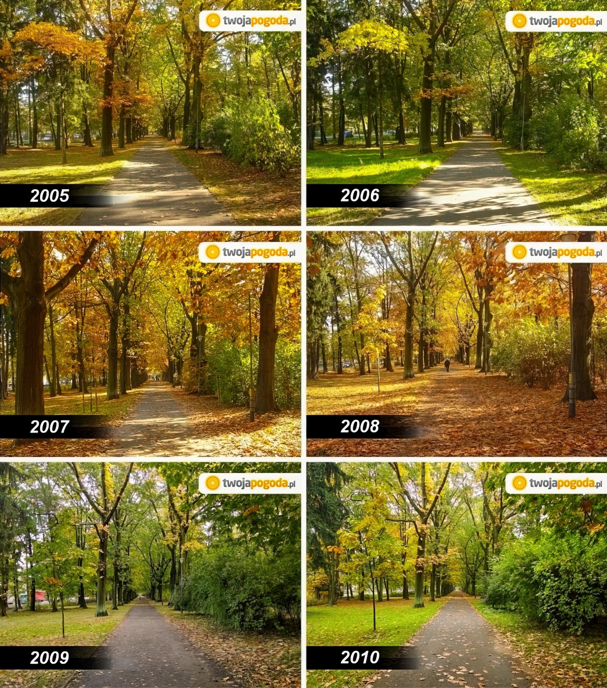 Kontynuujemy nasz wyjątkowy projekt, zgodnie z którym każdego roku 18 października fotografujemy ten sam krajobraz w jednym z wrocławskich parków, aby porównać, jak zmieniają się kolory na tle lat. Raz jesień przychodzi wcześniej, innym razem się spóźnia.