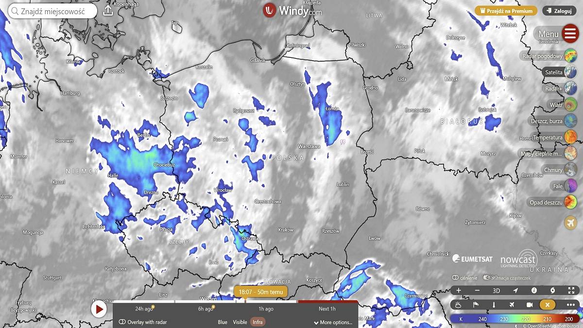 Na zdjęciu satelitarnym widoczna jest chmura burzowa nad północnym Mazowszem. Fot. windy.comTamten październik zapisał się niezwykle również w Warszawie, ponieważ w stolicy wystąpiły wtedy dwa burzowe dni, po raz pierwszy w tym miesiącu od 14 lat. Pod wodą znalazła się m.in. część Wisłostrady.