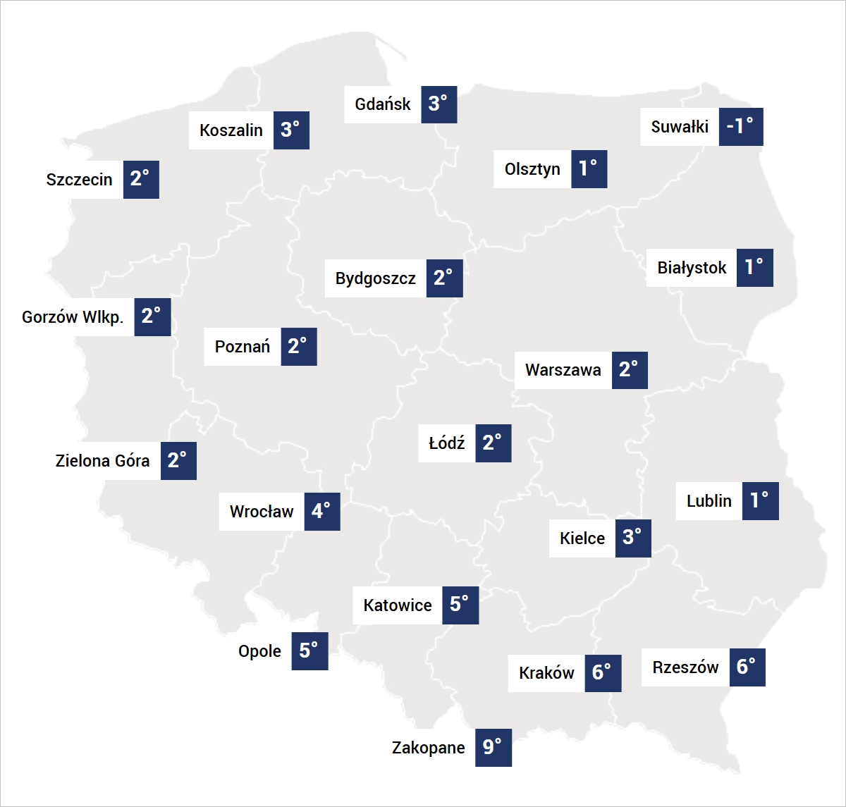 Od 13 listopada najpierw na Suwalszczyźnie, Podlasiu i Mazurach, a w następnych dniach także na Warmii, Mazowszu i Lubelszczyźnie temperatura w najcieplejszym momencie dnia będzie osiągać zero, miejscami minus 1 stopień, zaś w nocy i o poranku spadnie nawet poniżej minus 5 stopni.
