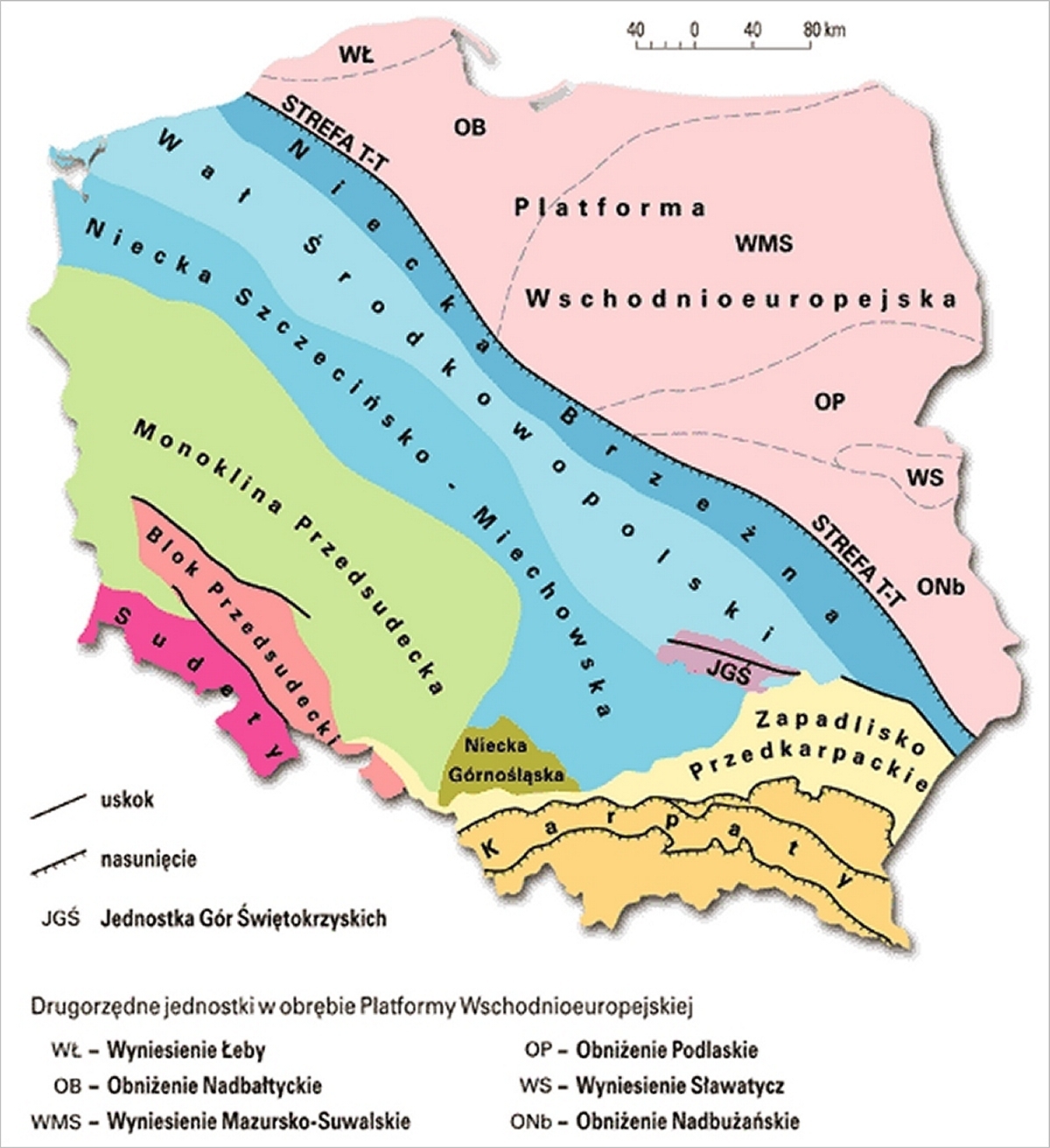 Różnica między tymi dwiema częściami Polski jest kolosalna i dotyczy nie tylko budowy skał, ale nawet temperatury. Północno-wschodnia część kraju spoczywa na tzw. platformie prekambryjskiej. To gruby, zimny i niesamowicie stabilny fragment skorupy ziemskiej, który działa jak pancerna tarcza.