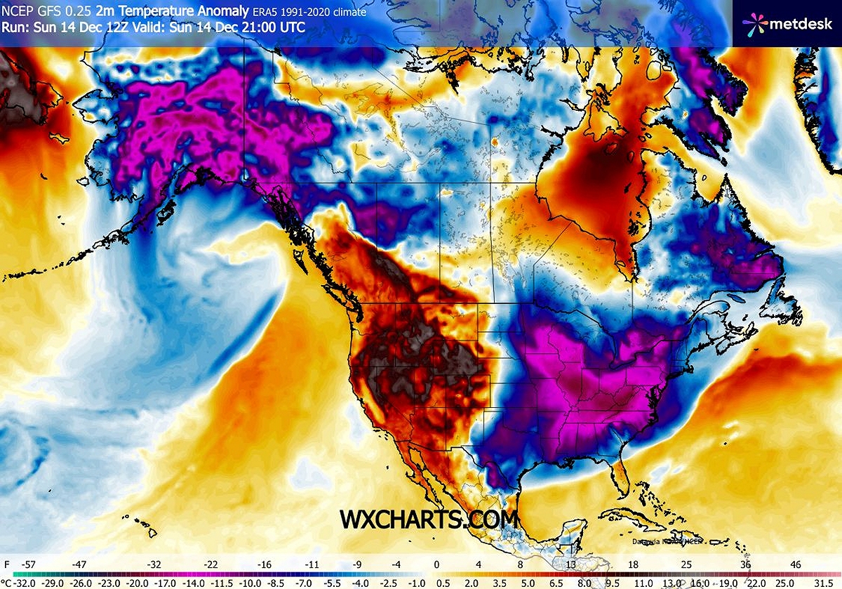 Chociaż w pierwszej połowie tygodnia fala mrozów zacznie ustępować, jednak na krótko, bo druga połowa przyniesie kolejne gwałtowne spadki temperatury. Największe mrozy nadejdą w okresie świątecznym, obejmując większość regionów Kanady i USA. Meteorolodzy ostrzegają, że zima może być najsroższa od półwiecza.