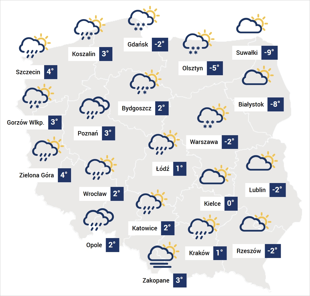 Poniedziałek (12.01) będzie ostatnim dniem z całodobowym mrozem w jakimkolwiek regionie Polski. Szczególnie lodowato zapowiada się nadchodząca noc, ponieważ we wschodniej połowie kraju oraz na terenach górzystych temperatura spadnie od -15 do -20 stopni, a lokalnie do -25 stopni.