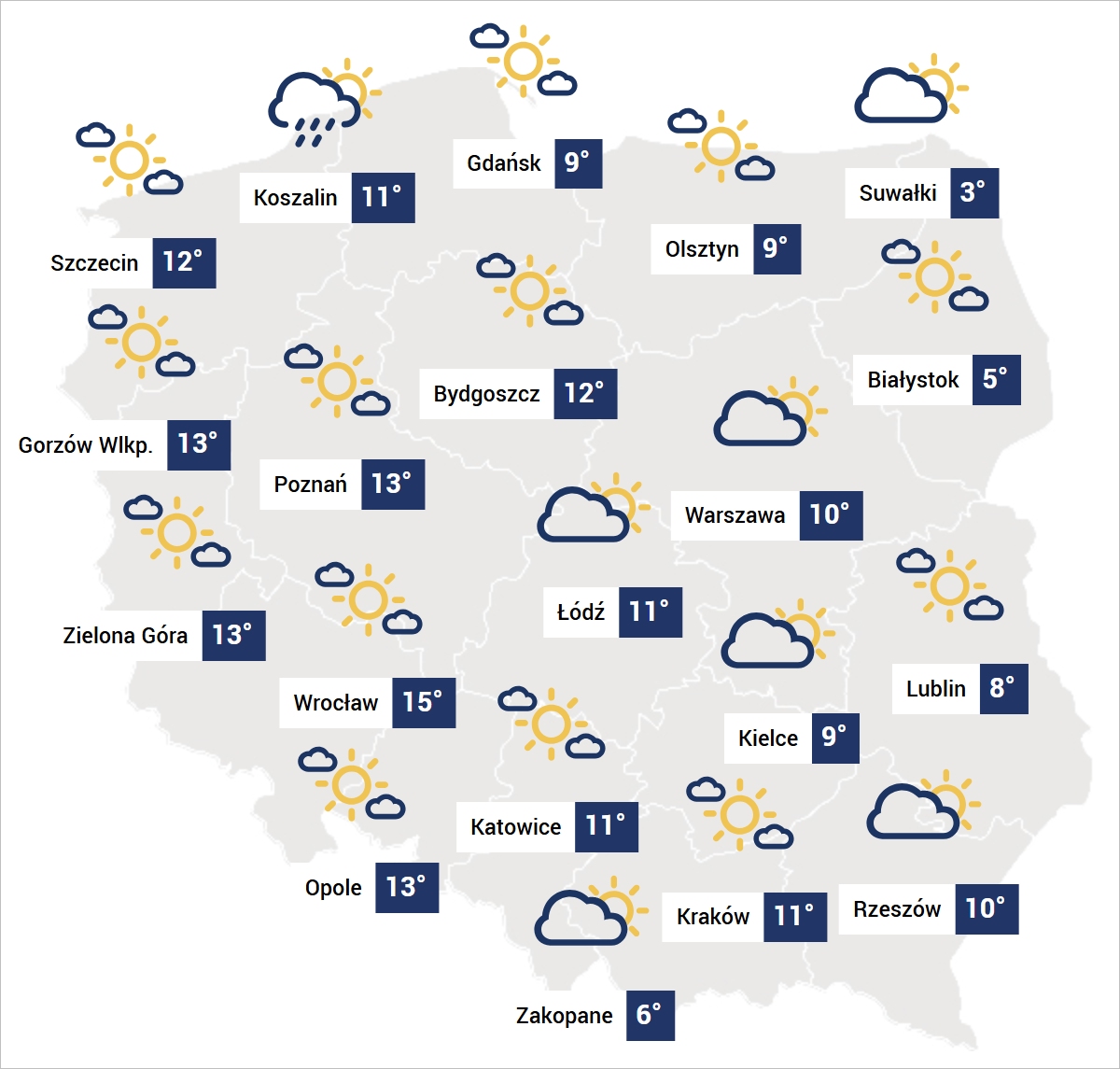 Prognoza pogody na środę.Termometry pokażą popołudniami od 1 do 5 stopni na wschodzie i północy oraz od 5 do 10 stopni na zachodzie i południu kraju. W drugiej połowie tygodnia ociepli się jeszcze bardziej, przeważnie powyżej 5 stopni, a na zachodzie, południu i w centrum do przeszło 15 stopni.