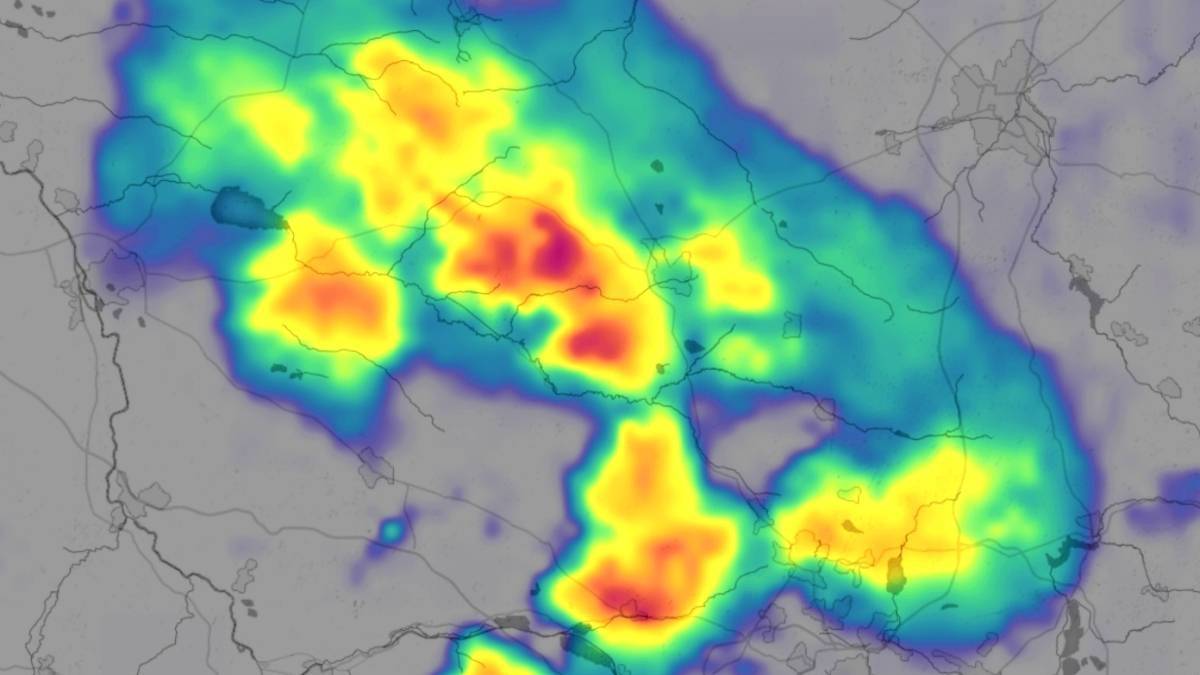 Na mapach radaru meteorologicznego kolory wskazują intensywność opadów. Standardowa skala kolorów jest następująca: niebieski - bardzo słabe opady, zielony - słabe, żółty - umiarkowane, czerwony - intensywne, bordowy/różowy - nawalne.