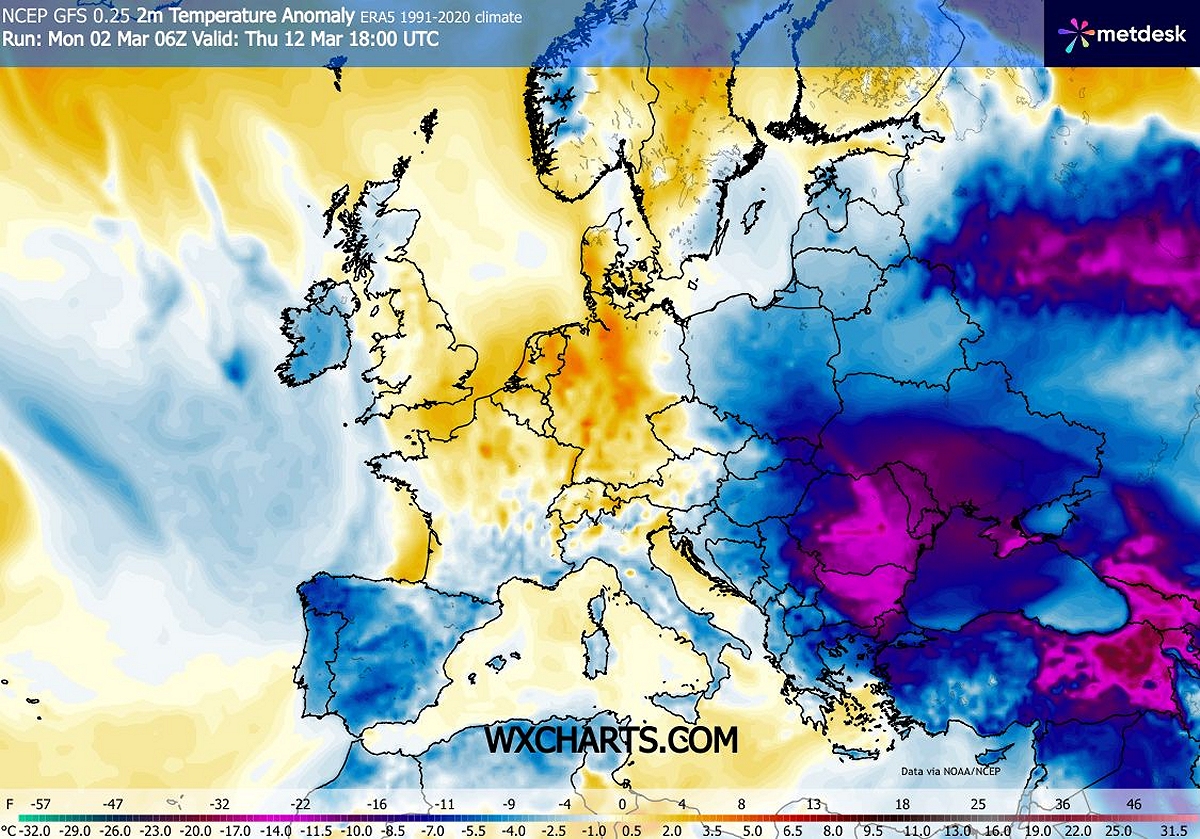 Jednak od około 10 marca znad Arktyki w kierunku środkowej i wschodniej części Europy zacznie spływać jęzor lodowatego powietrza. Ze względu na to, że jest to jeszcze odległy termin, wciąż nie jest w pełni jasne, którą trajektorią mroźna masa będzie podążać.
